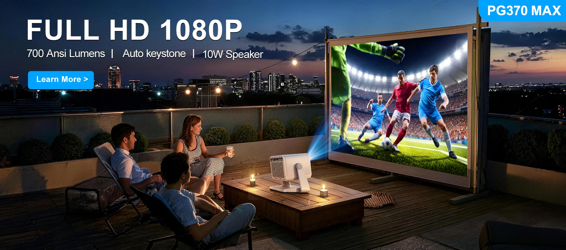 Portable size design is easy for outdoor projector use. Bigger screen and premium sound effects enlarge your happiness as a home cinema experience. Just enjoy it!