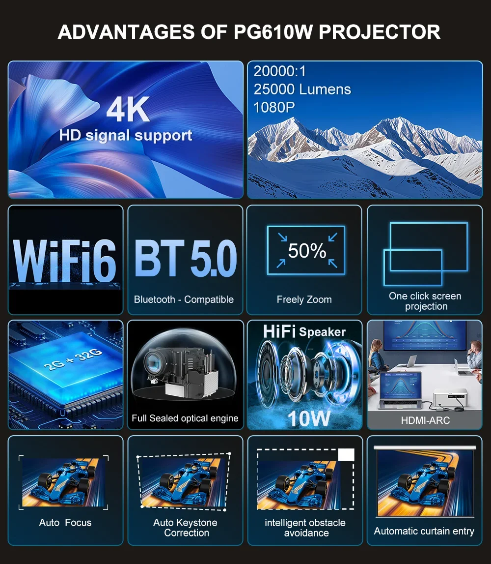 PROGAGA PG610W Full HD 1080P Projector Android 4K WiFi 2G 32G PG610W Beamer Home Theater Meeting Game Video Projector