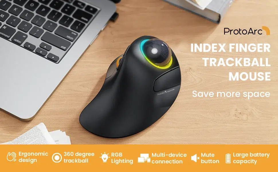 ERGONOMIC INDEX FINGER TRACKBALL: Equipped with a 44mm trackball, move your cursor with one finger movement instead of moving your wrist and arm. It will effectively reduce fatigue and strain for your wrist and arm. Not only work on flat surfaces, but also on your leg, sofa and other surfaces as well, especially on the narrow space, such as the messy desktop