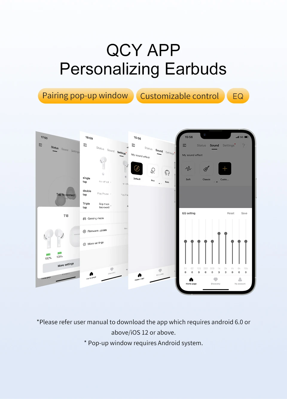 QCY T18 Bluetooth V5.2 Wireless Earphones QCC3040 aptX Voice 32kHz 4 Mic CVC 8.0 Noise Reduction Headphone Intelligent Connection to Dual Devices