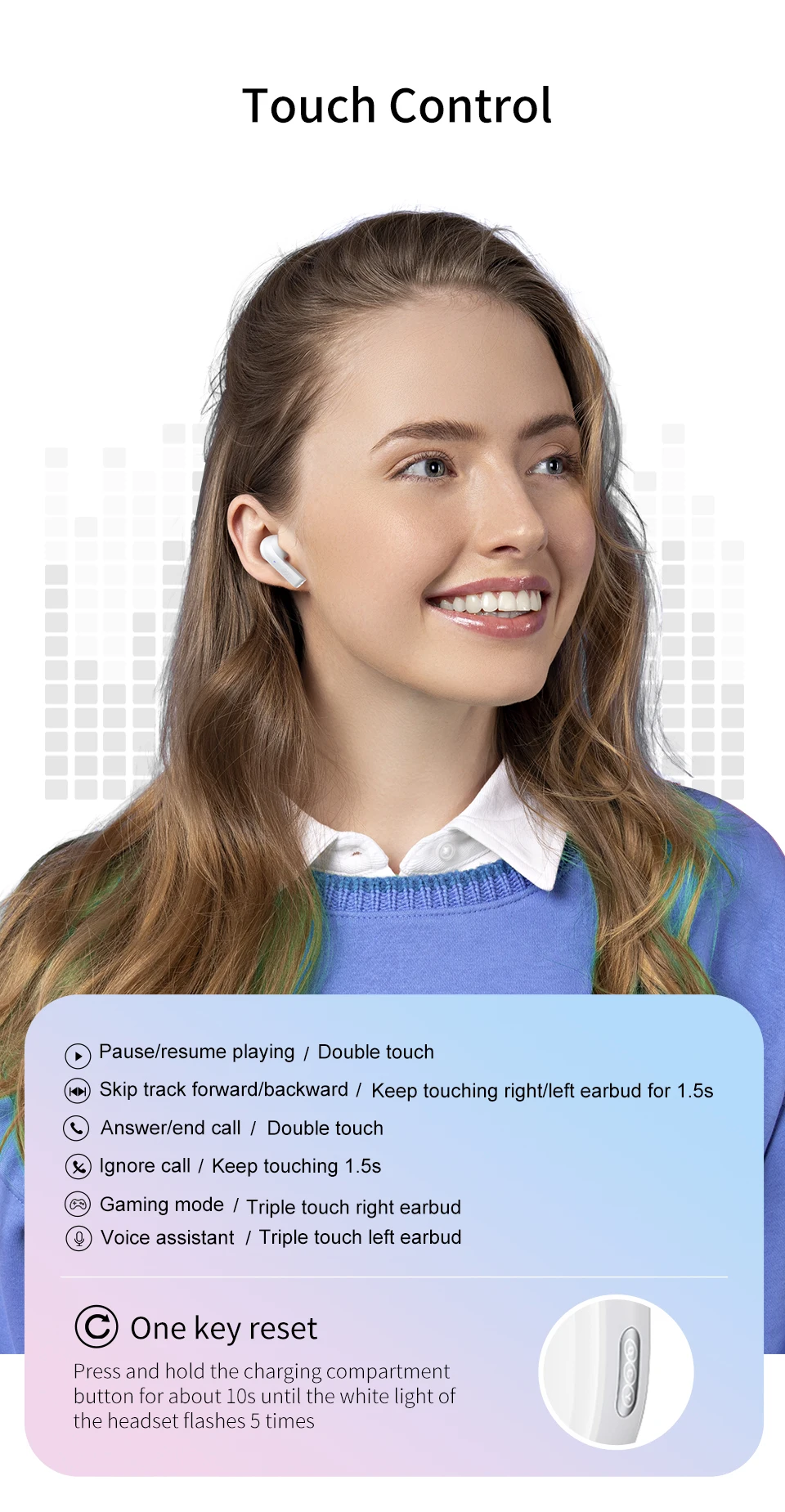 * Triple touch right earbud to turn on/off Gaming Mode.