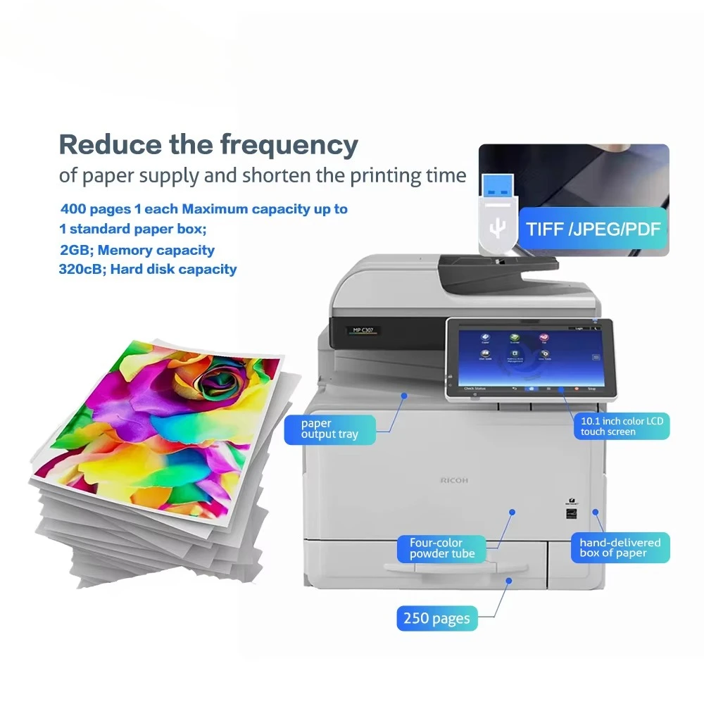 Tags: 2GB Memory, 600dpi Scanner, A3 Paper Size, color laser printer, High Speed Printing, Ricoh MPC307, Wireless Copier