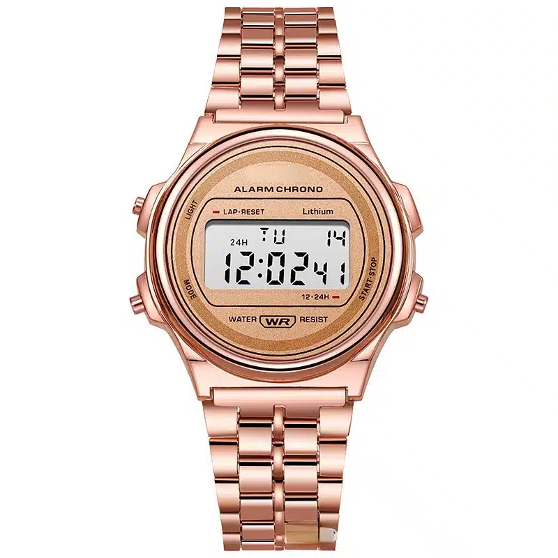 Retro Square Digital Watch for Women & Men – Rose Gold Silver