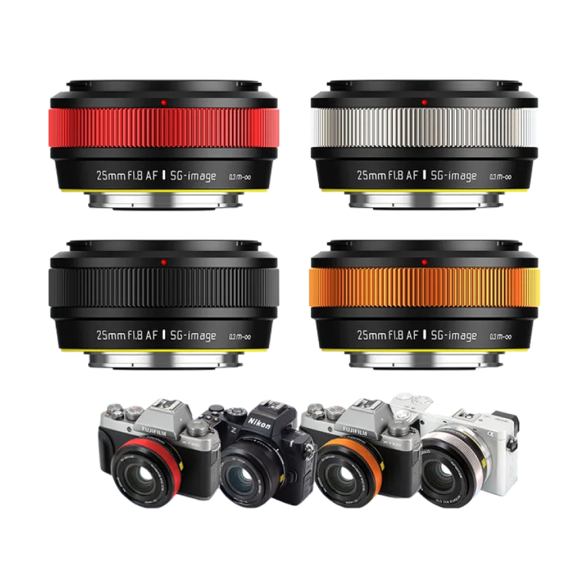 Discover the SG Image 25mm F1.8 autofocus prime lens designed specifically for APS-C mirrorless cameras. Featuring a bright maximum aperture of f/1.8, this lens excels in portrait photography and low-light conditions, delivering stunning bokeh and sharp images.