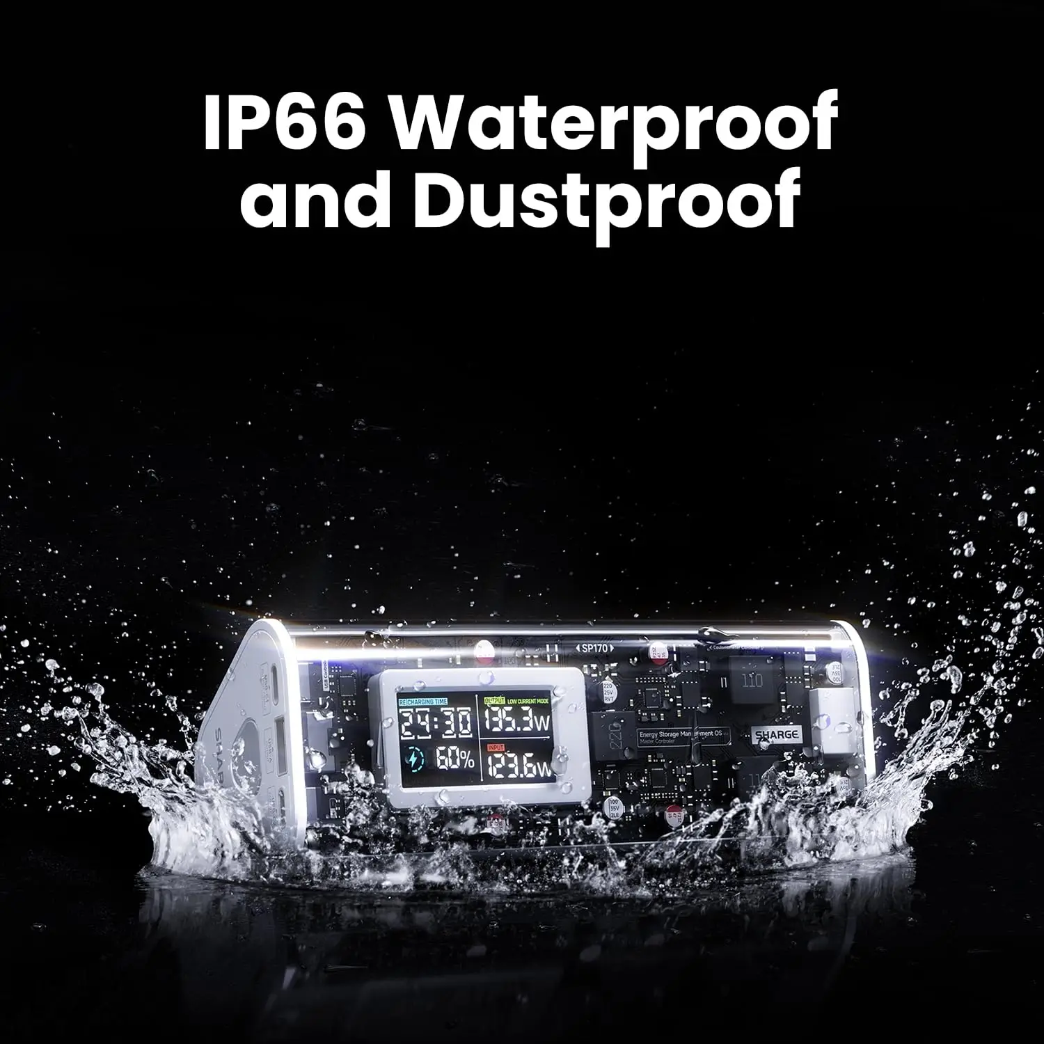 IP66 Waterproof & Dust Resistance: The First IP66-rated high-power portable charger on Amazon. Tough against dust and water. Note: It’s not designed for immersing in water or underwater adventures