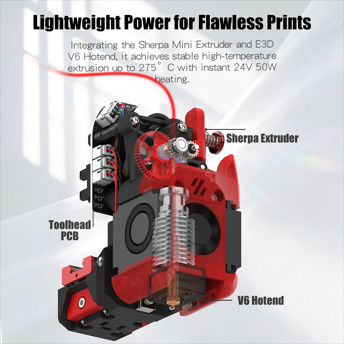 Experience high-speed 3D printing with the SIBOOR BOOM Kit featuring a sturdy full-metal CoreXZ frame and precision engineering. Print up to 400mm/s with a maximum build size of 220×220×220mm for detailed models. The FDM printer includes a lightweight Sherpa extruder paired with a reliable V6 full-metal hotend and a 0.4mm nozzle diameter, supporting PLA, PETG, and TPU filaments.
