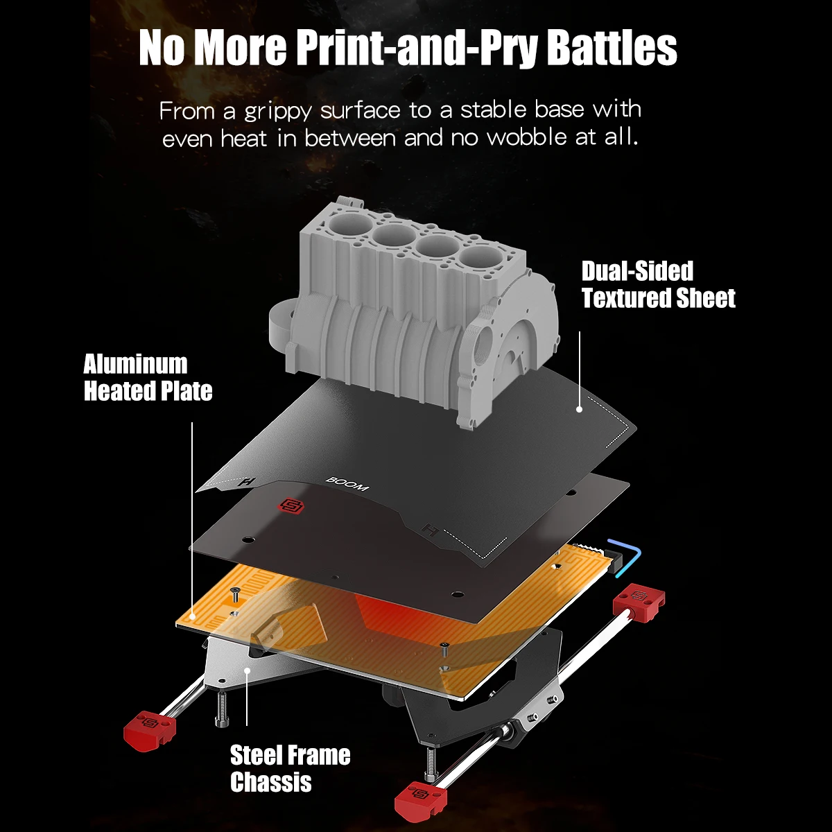 - Build Plate: Dual-textured flexible plate offers strong adhesion and easy model removal.