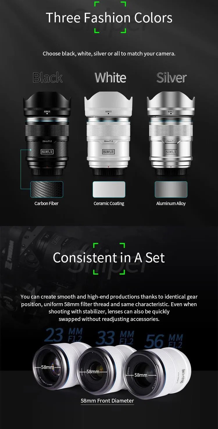 2 reviews for SIRUI Sniper Series APS-C Auto Focus Prime Lenses for Sony E