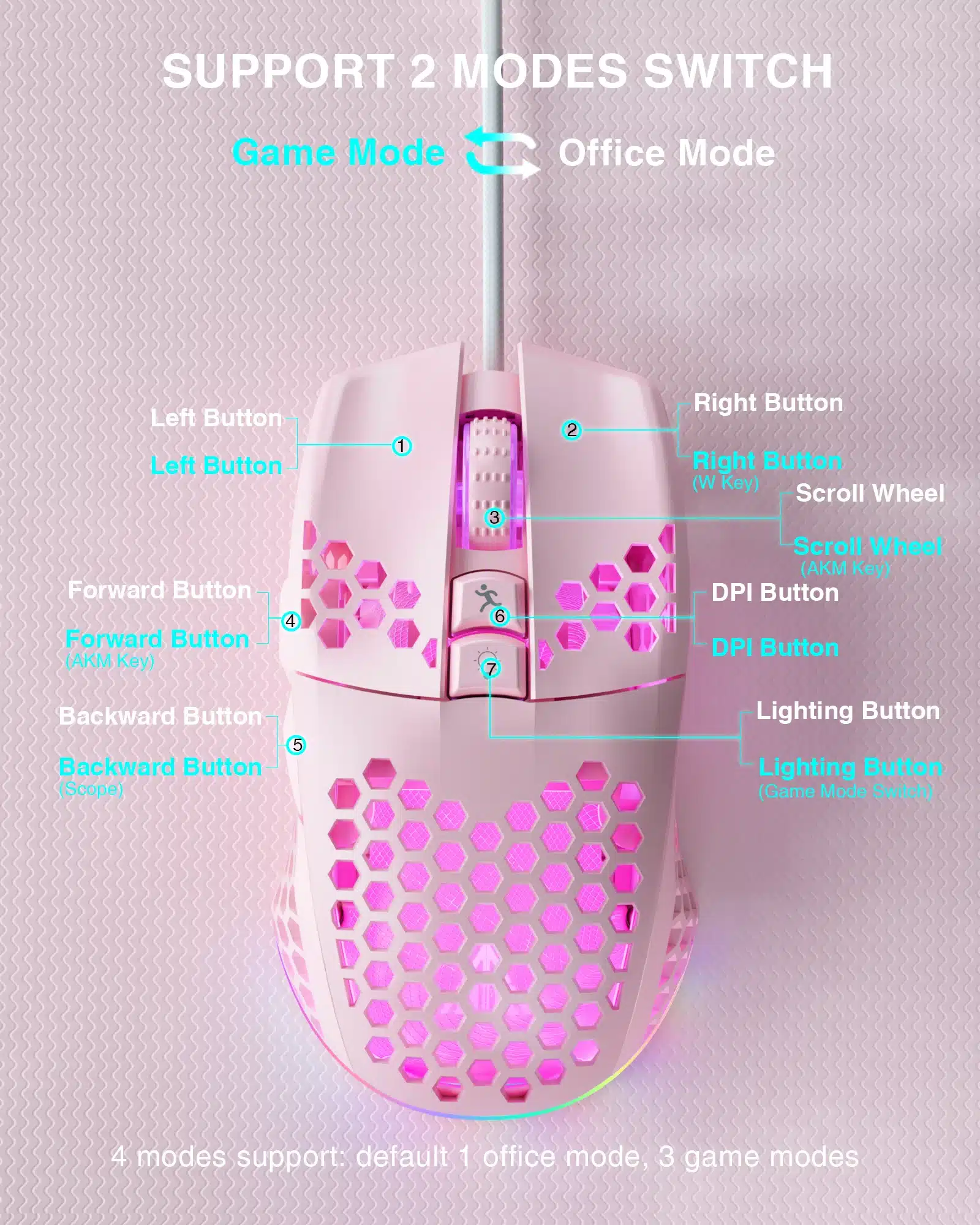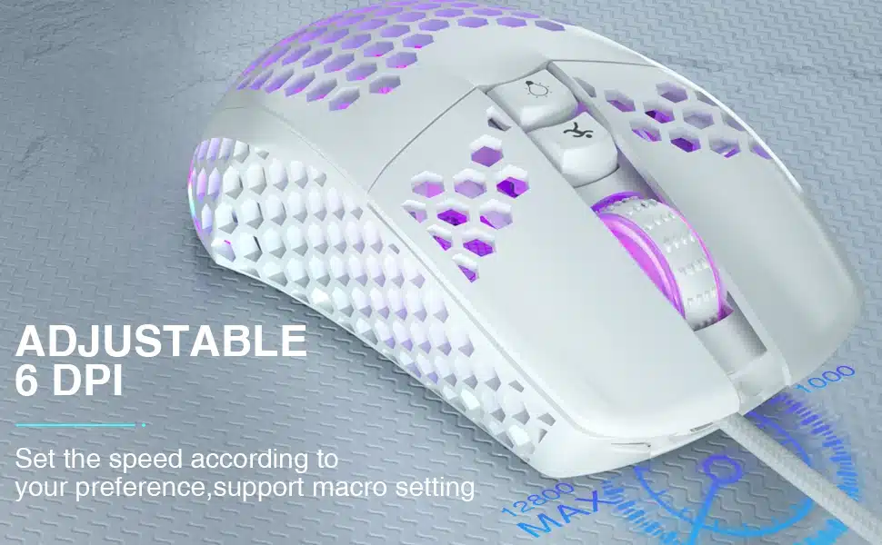 SOLAKAKA SM900 Wired Gaming Mouse with Honeycomb Shell 12800DPI 7 Programmable Buttons Custom Macro Ergonomic Computer Mouse