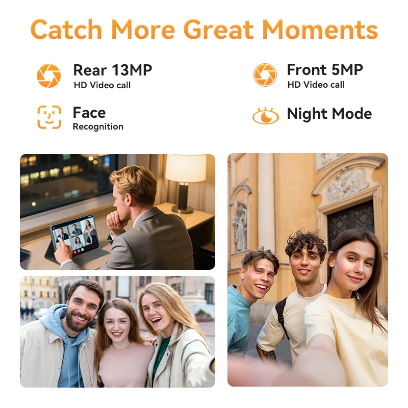 Certified with CE, FCC, RoHS, this tablet balances flagship specs and long battery life, perfect for gaming, streaming, and productivity. Multi-language support includes English, Russian, Spanish, and more.