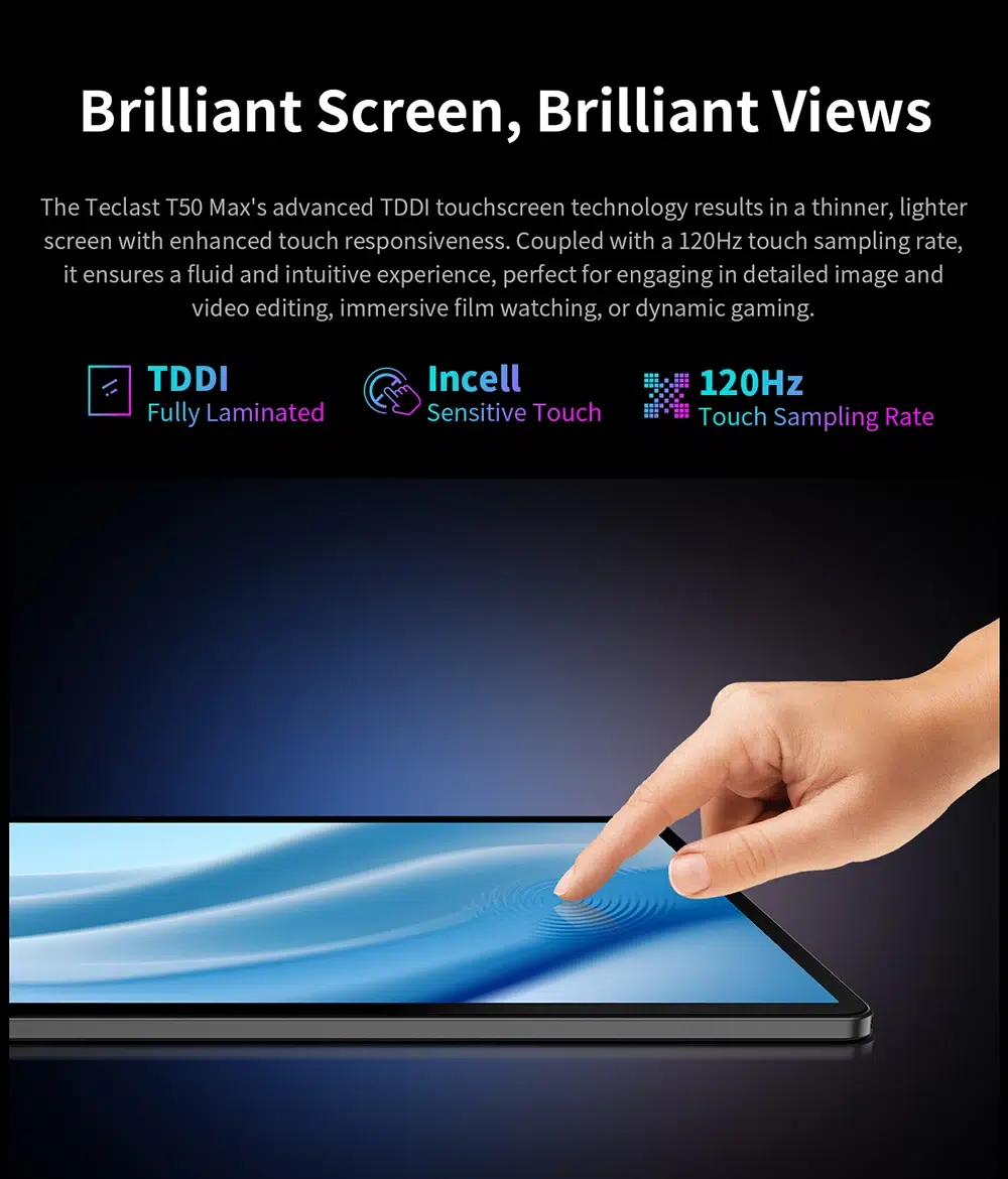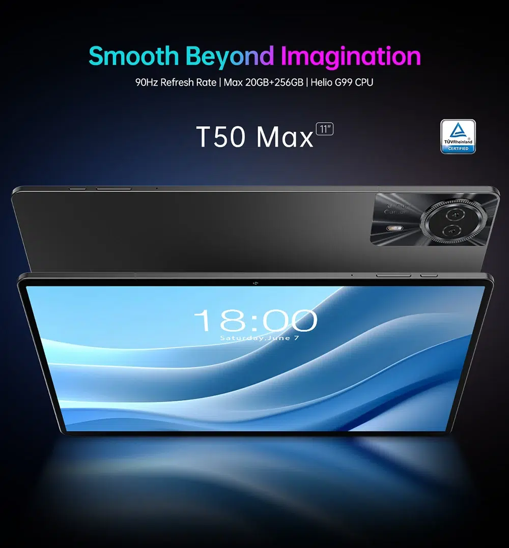 Teclast T50 Max Tablet 11″90Hz AdaptiveSync Refresh Rate TÜV Rheinland Certification Android 14 MTK Helio G99 8GB 256GB 4G VoLTE 8000mAh Battery 18W Fast Charging
