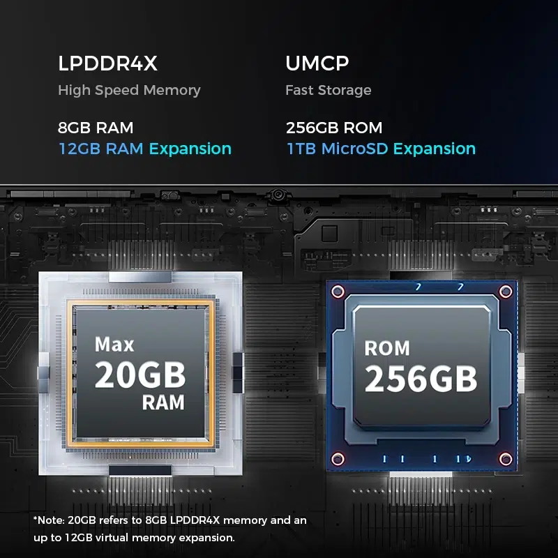 | RAM | 8GB LPDDR4X; Virtual memory 12GB |