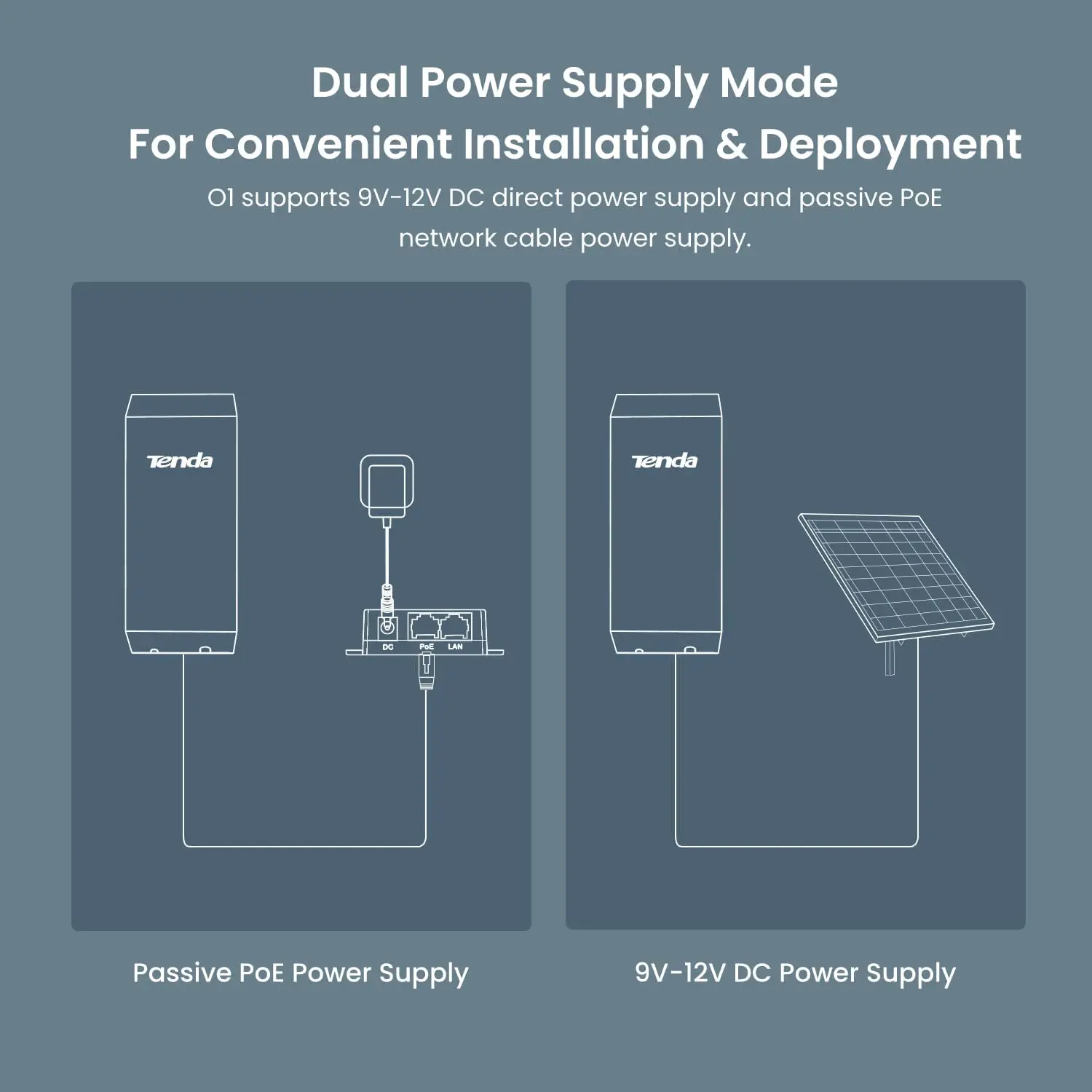 The Tenda O1 2.4GHz 300Mbps Wireless Bridge offers a 500m range for long-distance outdoor connections, ideal for video surveillance and wireless ISP, with a weatherproof design and easy setup.