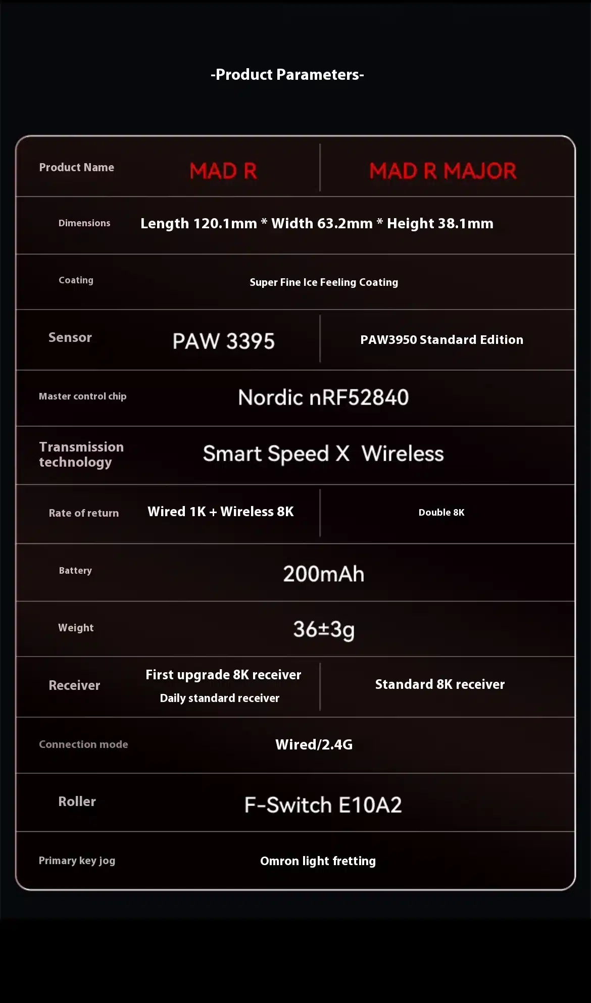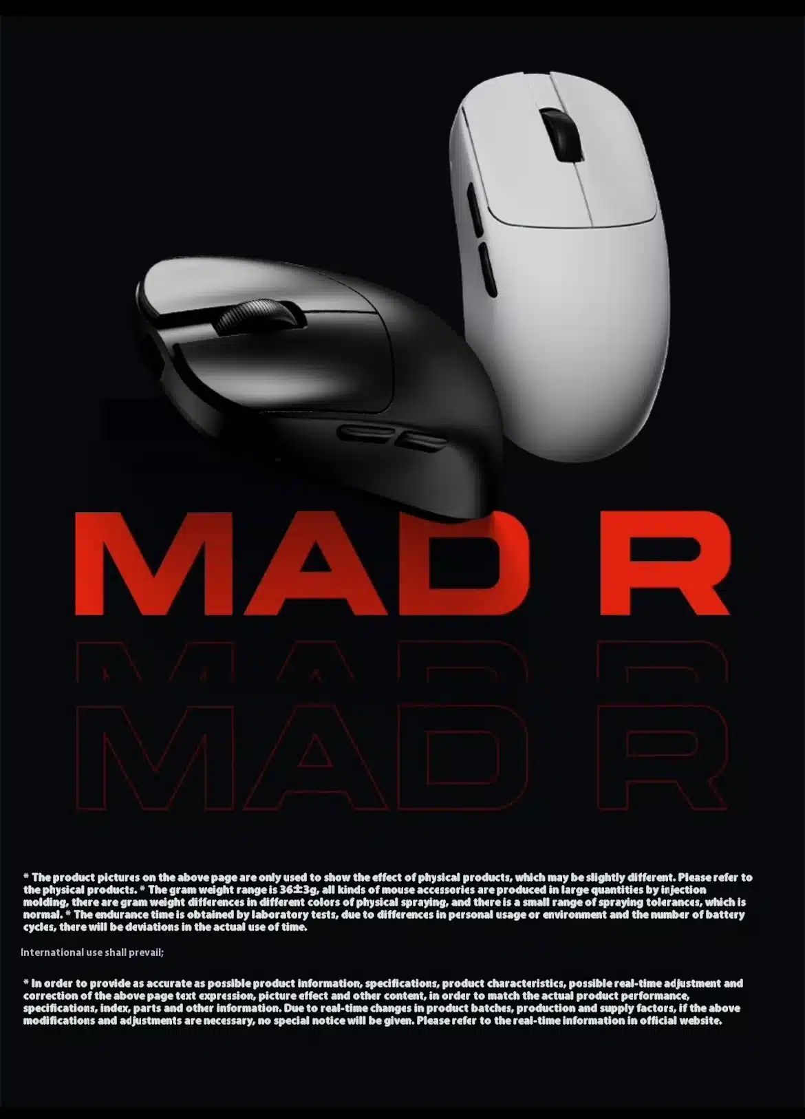 The New Vxe Mad R/R Major Gaming E-Sports Mouse Paw3395/3950 Dual-Mode Nonporous Lightweight Ergonomic Standard 8k