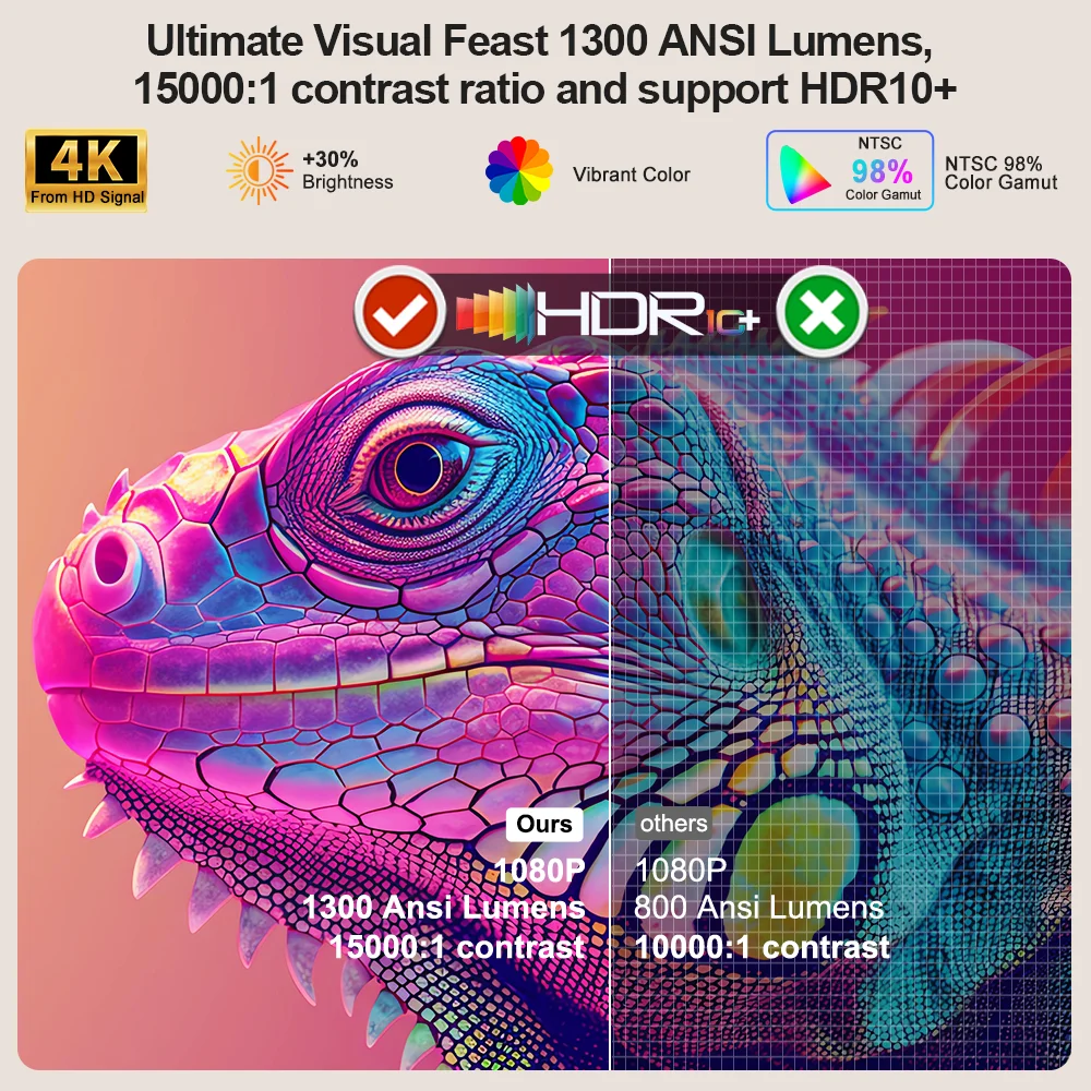 Ultimate Visual Feast 1300 ANSI Lumens, 15000:1 contrast ratio and support HDR10+