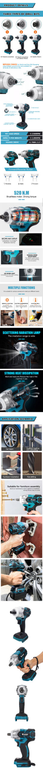 151 reviews for TW285 520N.m Cordless Electric Impact Wrench – Brushless Power Tool for Makita 18V Battery