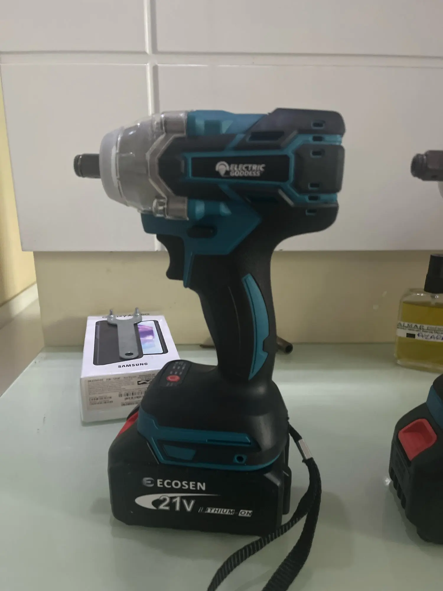 Makita is a compatible battery, so it is very easy to get batteries and the performance is very good. It is an excessive power source to unlock the car wheel, but I still like it quite a bit.