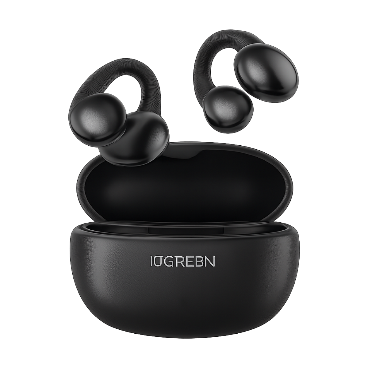 UGREEN HiTune S3 earbuds offer lightweight comfort with ergonomic clips, 12mm titanium drivers, Bluetooth 5.4, AI noise cancellation, IPX5 waterproofing, and touch controls for seamless sports and daily use.