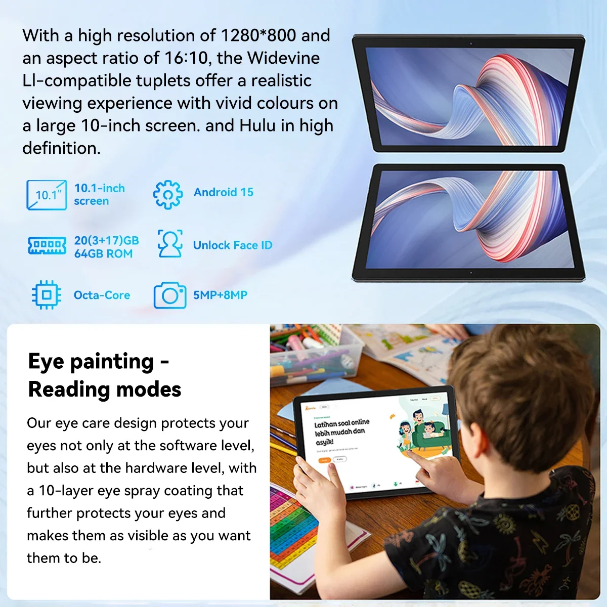 - Additional Features: Face unlock for quick, secure access; wireless projection to mirror content on larger screens; split-screen multitasking to run two apps simultaneously; gravity sensor for automatic screen orientation; OTG support to connect USB devices like keyboards and mice.