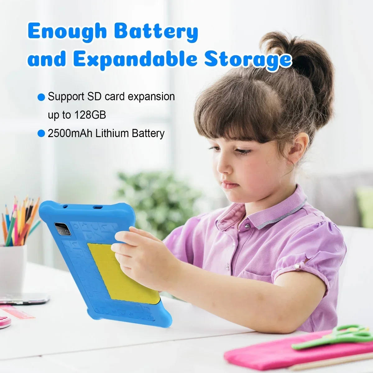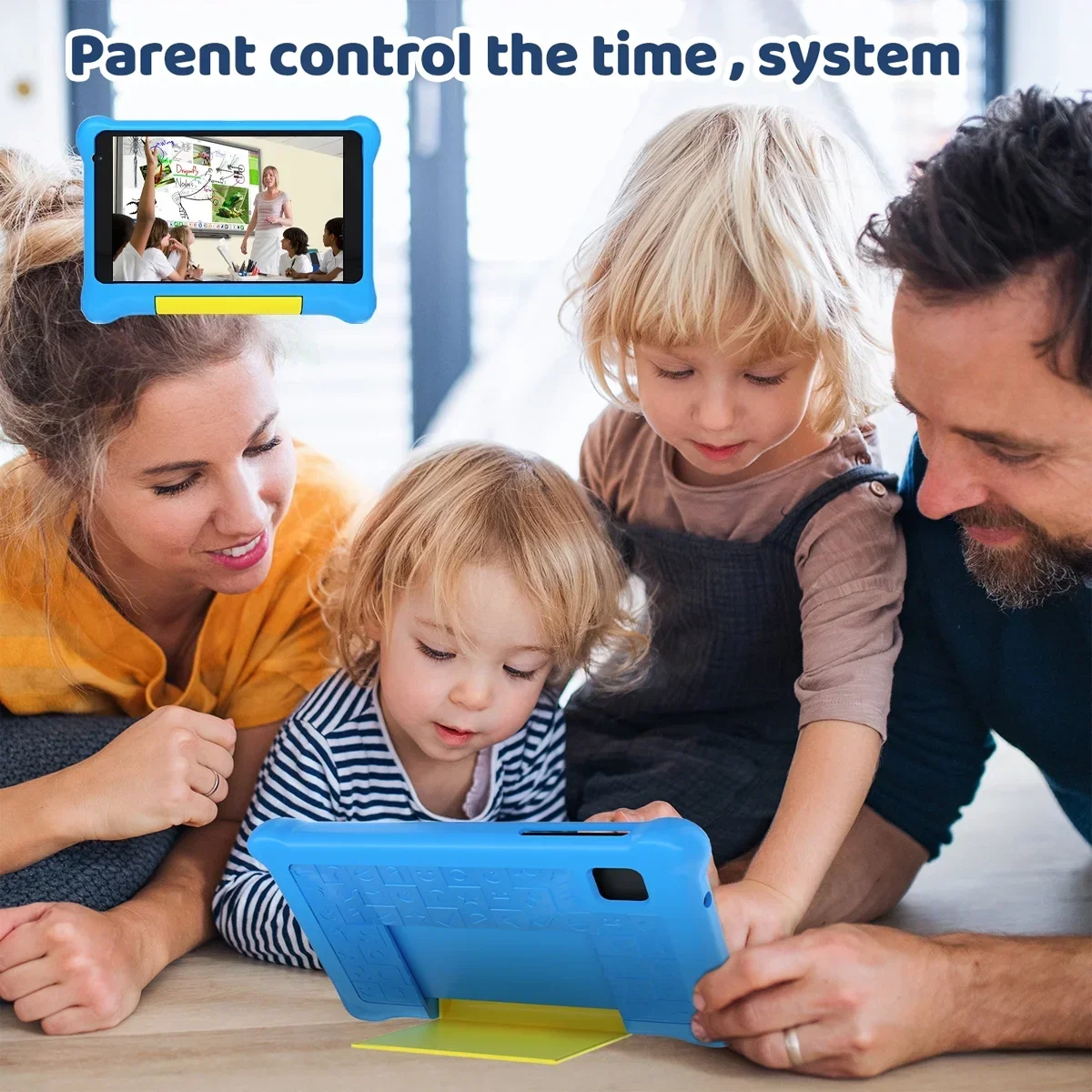 - Durable Design: Comes with a kid-proof silicone protective case featuring raised edges and side protection to guard against drops and bumps, plus a built-in kickstand for hands-free viewing.