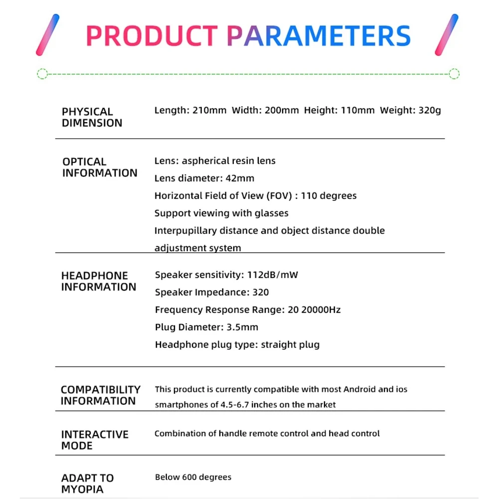 • Ports: VRPARK J60 3D Virtual Reality VR Glasses Headset Bluetooth Device Viar