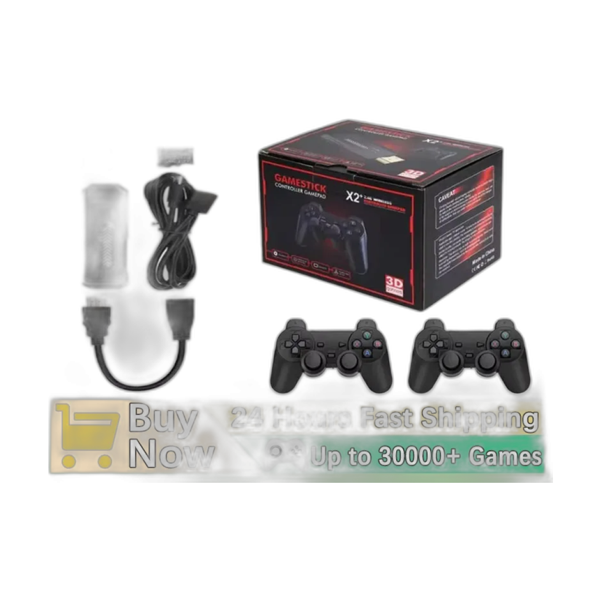 Equipped with two 2.4GHz wireless controllers, it allows up to 2 players to enjoy games together from the comfort of your sofa. The game stick supports 4K high-definition output, offering smooth gameplay with vivid colors and clear 3D visuals for a truly immersive experience.
