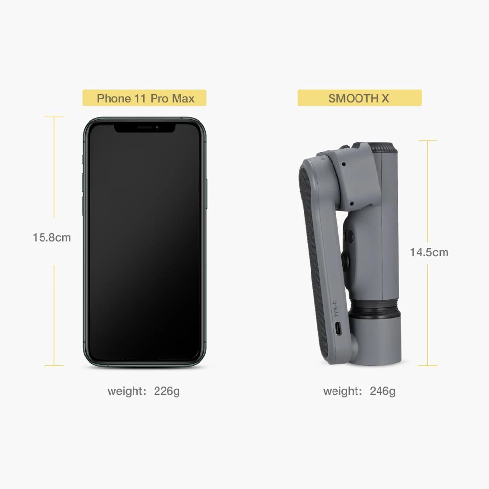 Experience smooth, professional-quality videos with the Zhiyun Smooth X 2-Axis Handheld Gimbal Stabilizer, designed for smartphones like iPhone 11/11 Pro, Samsung Galaxy S8+, Huawei, Xiaomi, and more. 🎥