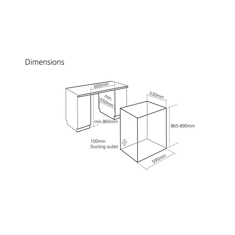 Dimensions: h865-890 x w595 x d550mm