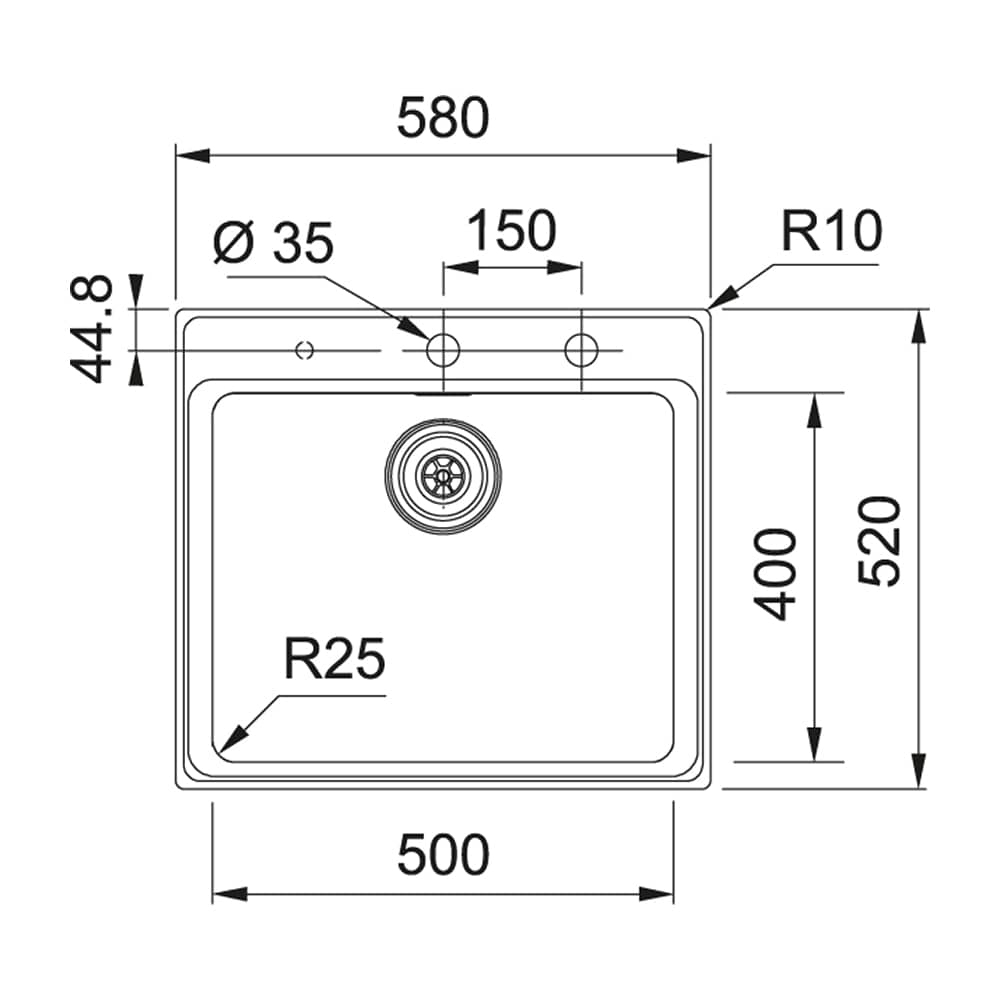 Single bowl sink SilkSteel finish Dimensions: w580 x d520mm