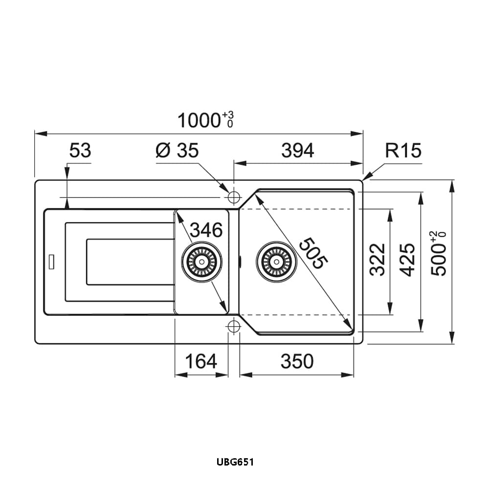 One and a half bowl sink Sage grey fragranite finish Reversible drainer Dimensions: w1000 x d500mm