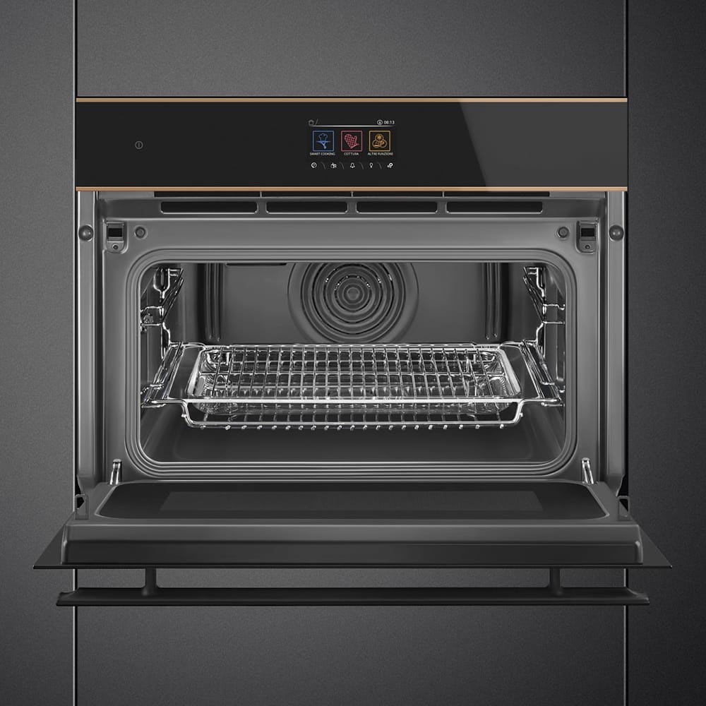 Black glass finish with copper trim and Eclipse glass