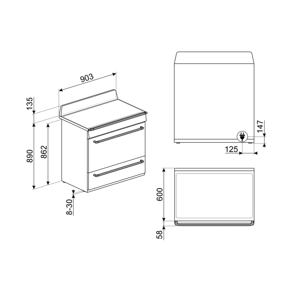 Centre: Ø 270mm, 2.3 kW (boost to 3.0 kW)